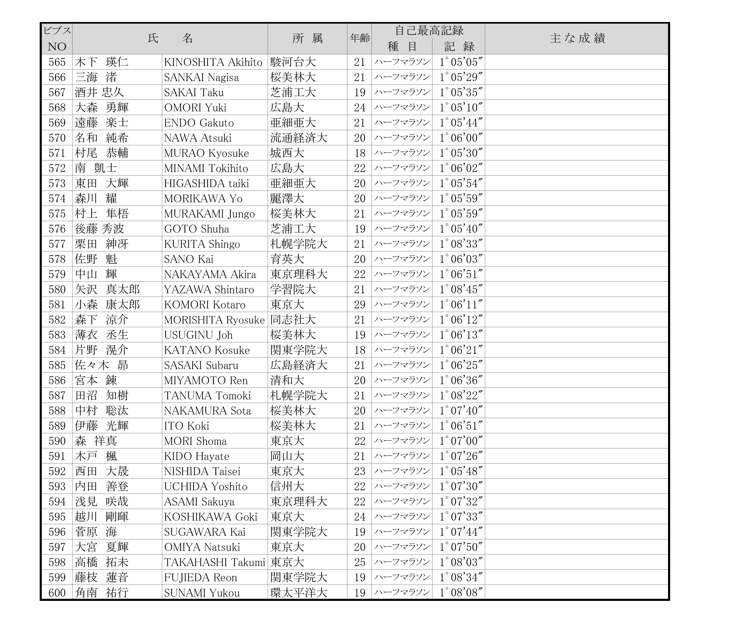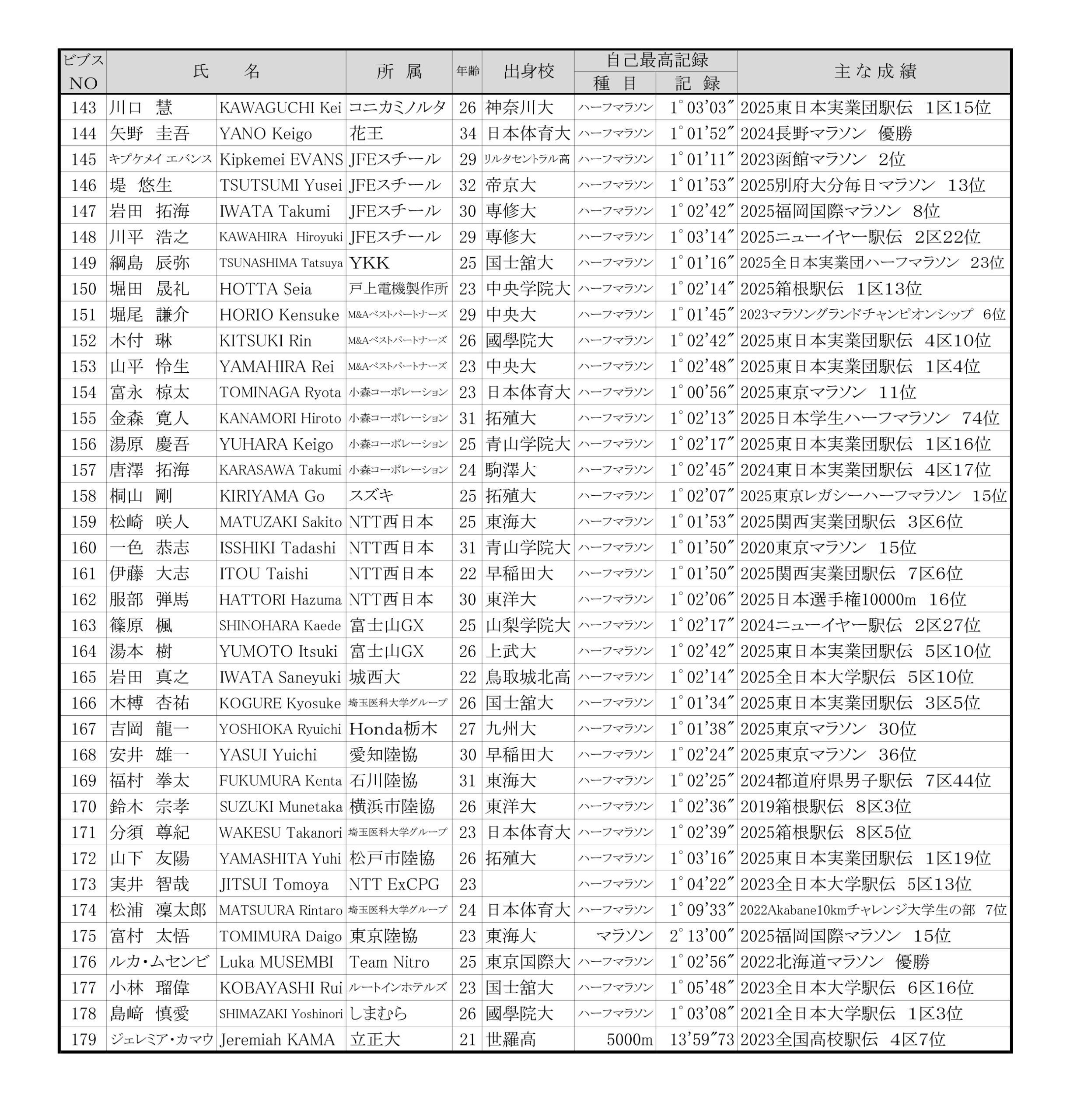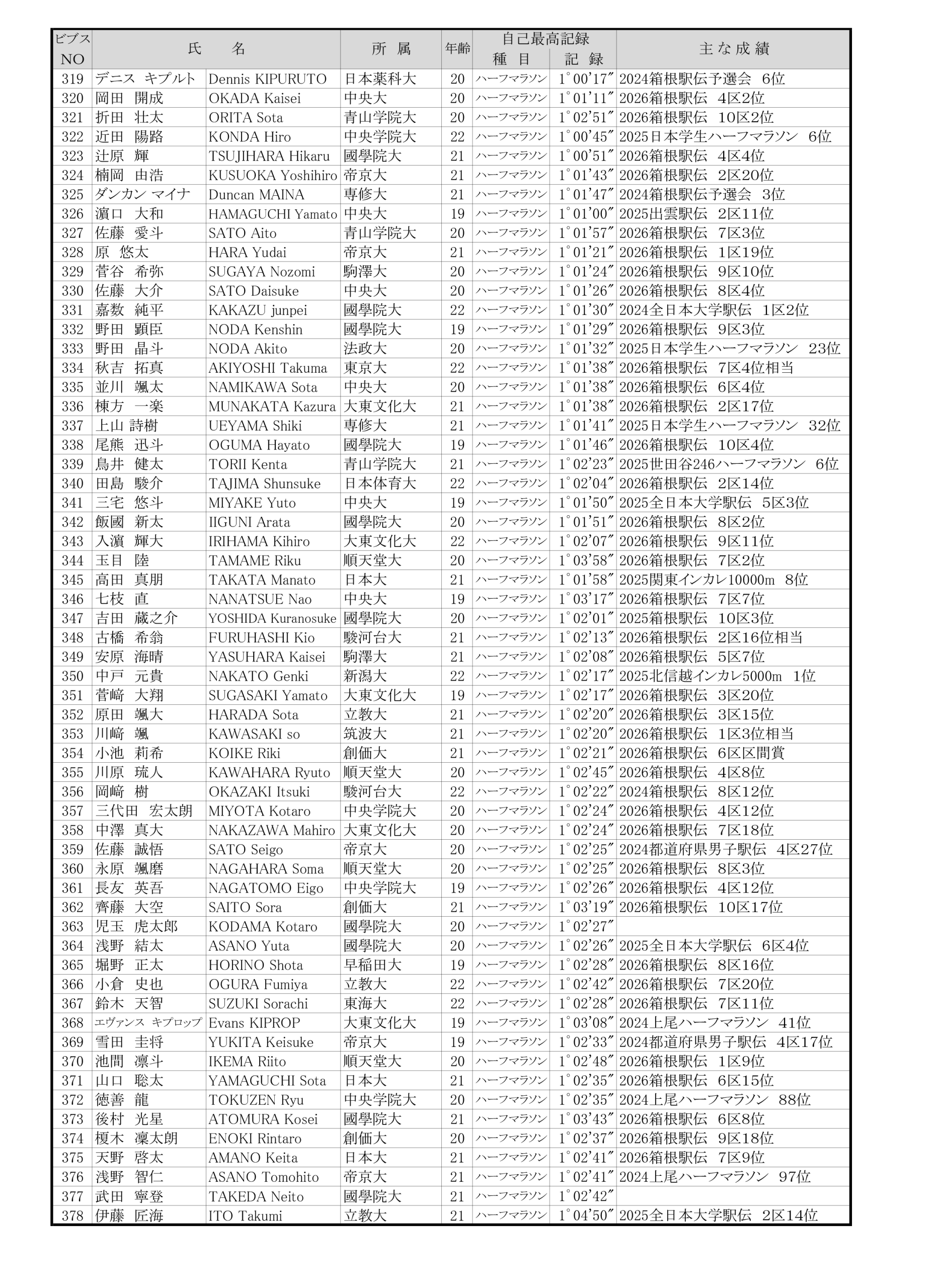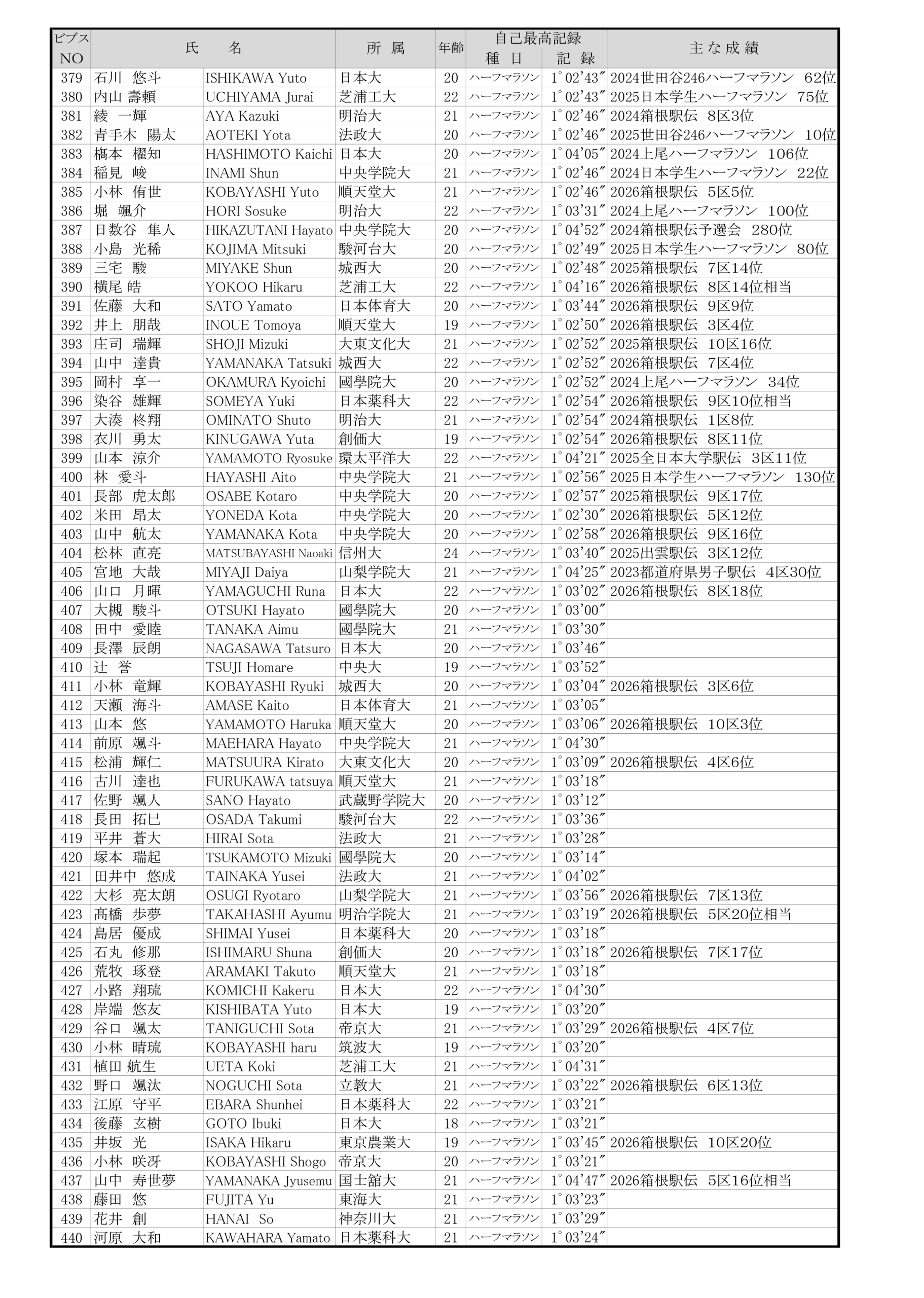 ■日本学生ハーフマラソン選手