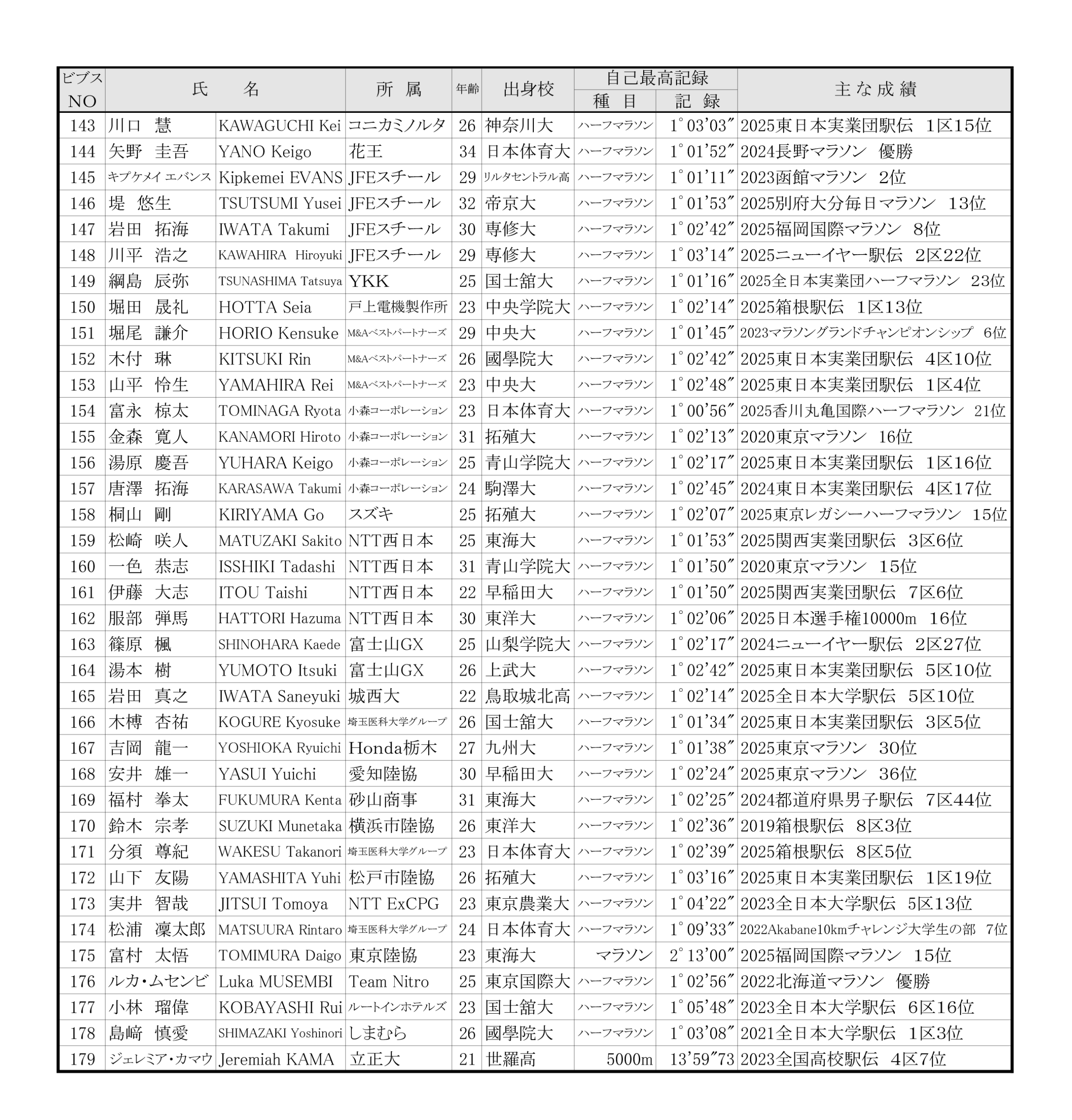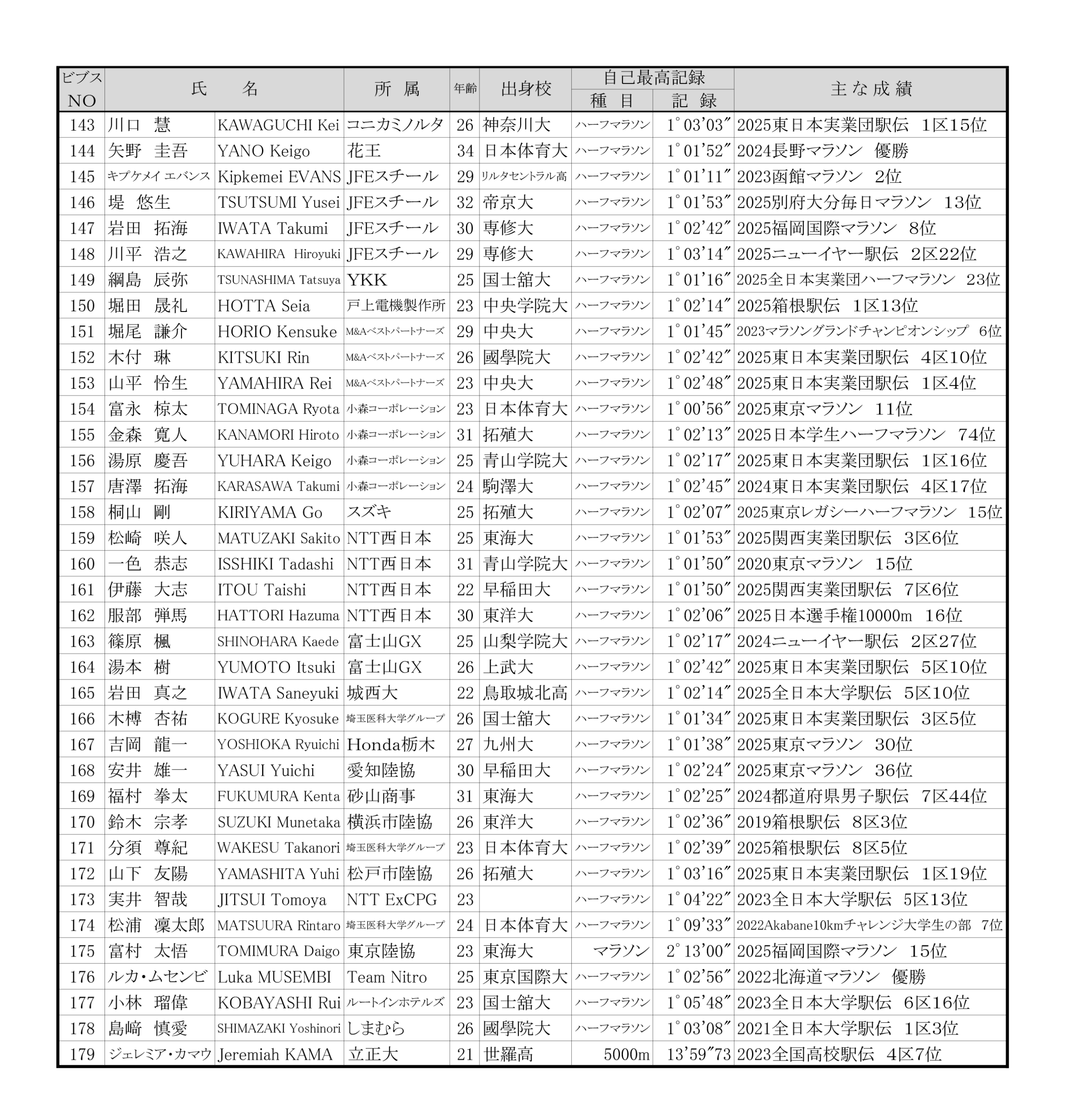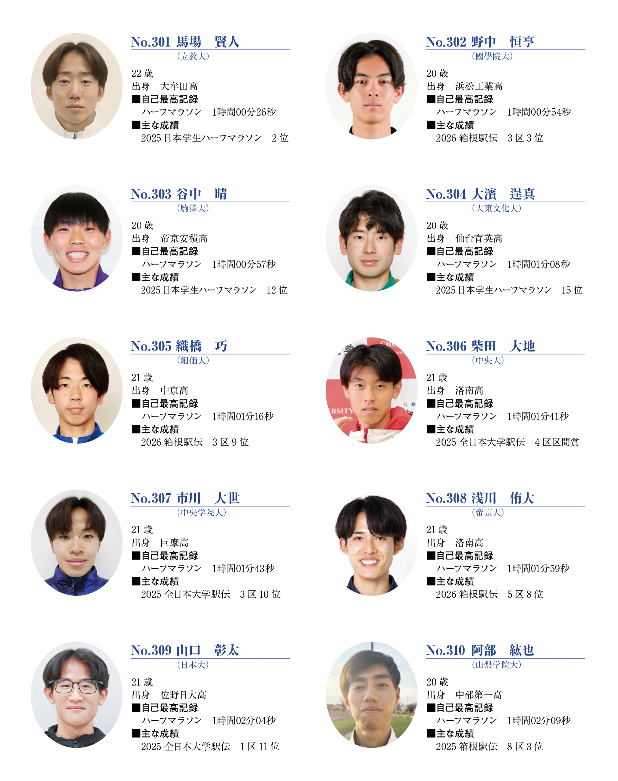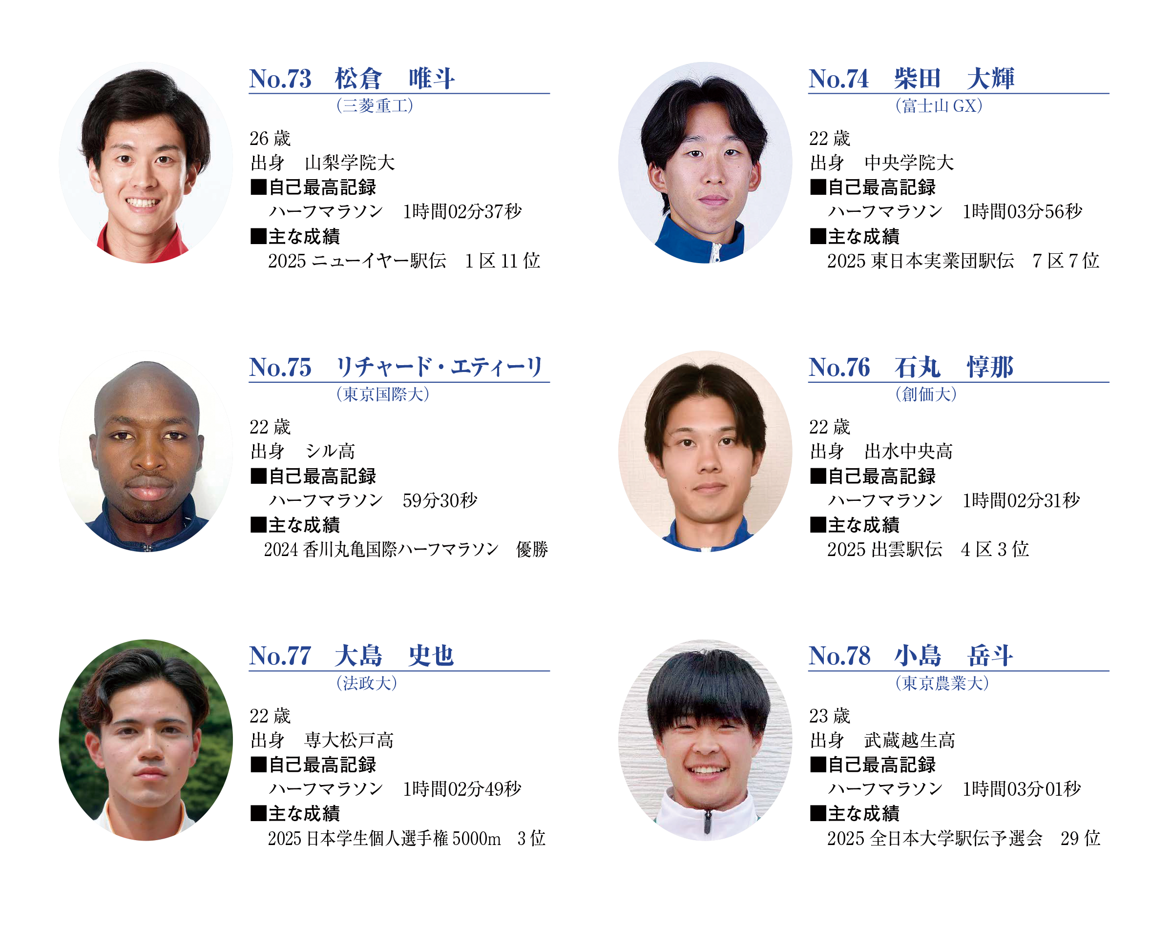 ■日本学生ハーフマラソン選手