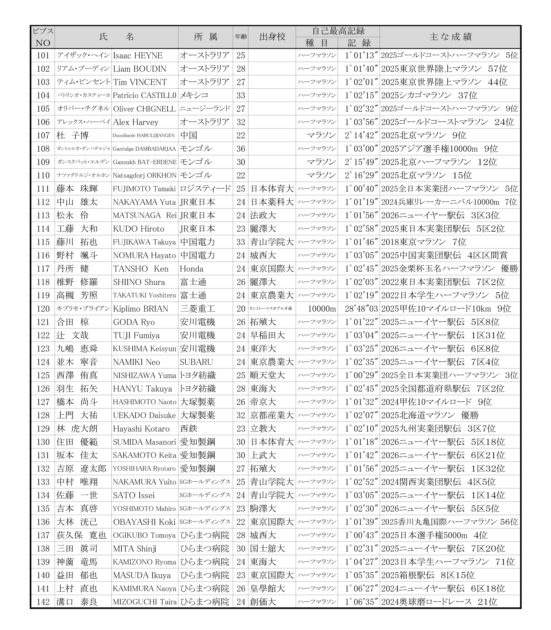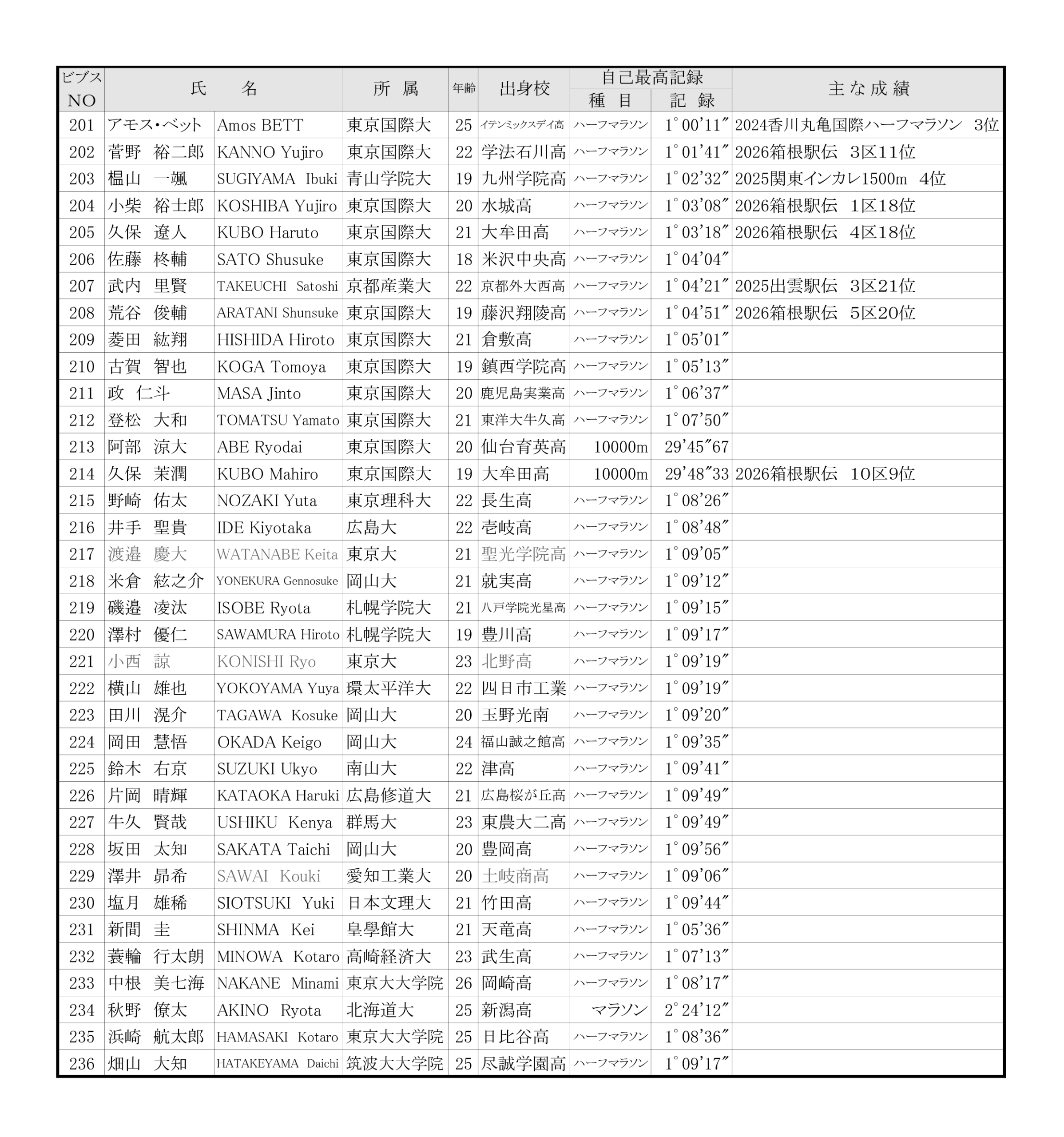 ■日本学生ハーフマラソン 招待選手